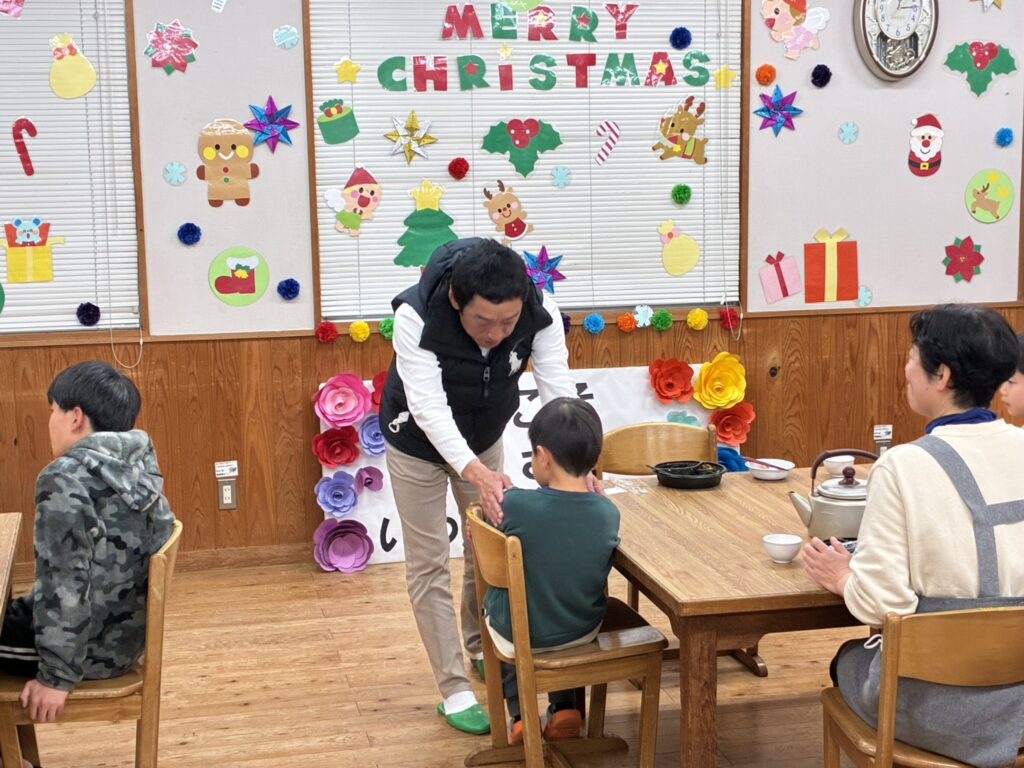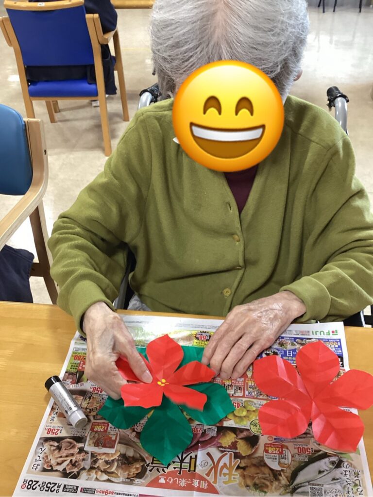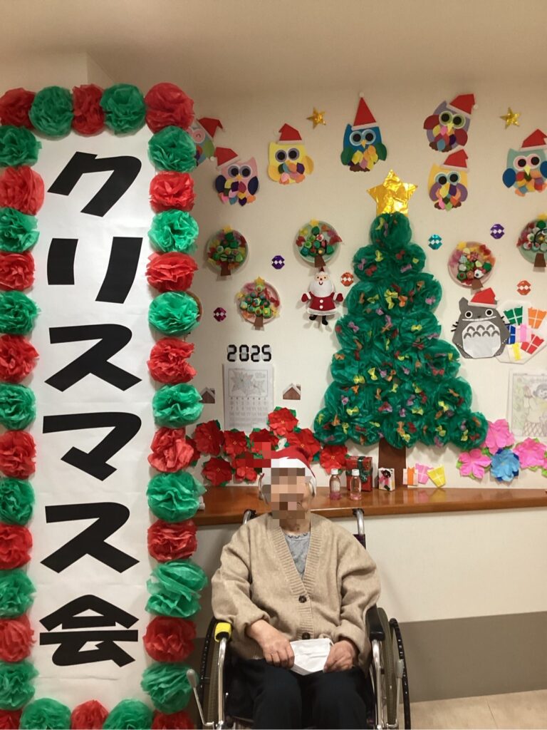 クリスマス会に向けては、利用者の皆さまと一緒に飾り付けを行い、館内は華やかなクリスマス一色に。準備の時間もまた、皆さまとの大切な交流のひとときとなりました。