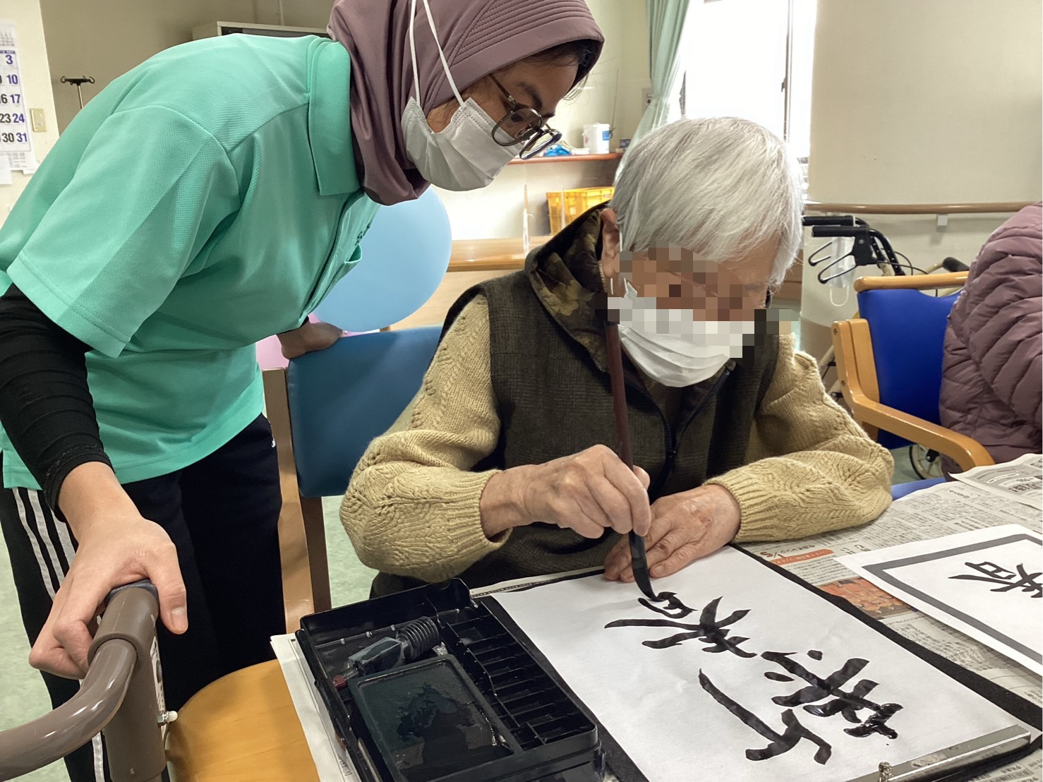書初めや絵馬づくり、壁紙の飾りつけを利用者の皆さまにお手伝いいただき、館内をお正月の雰囲気に模様替えしました。